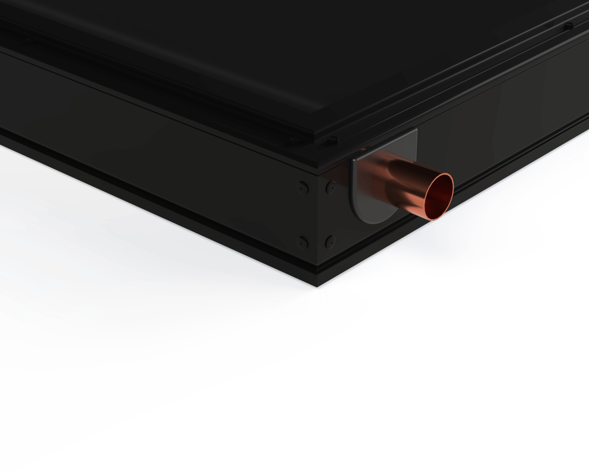 ABSORBER PLATE AND PIPING The black paint absorber shall consist of a roll-formed copper plate of no less than 0.008-inch thickness. Risers shall be a minimum of 0.50 inch O.D. Type M copper tubing on no more than 4.56 inch centers continuously soldered to the plate utilizing a non-corrosive solder paste with a melting point of 460o F. The risers shall be brazed to 1.125” O. D. Type M copper manifolds (0.875” O.D.