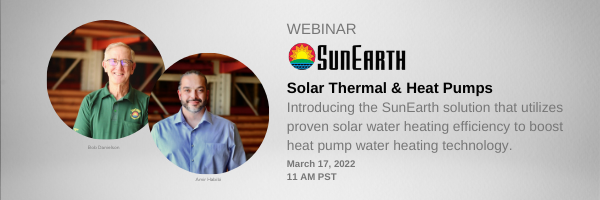 Join SunEarth's Bob Danielson and Amir Habibi in this 60 minute webinar as we discuss decarbonizing water heating while providing cost effectiveness solutions with annualized COP’s in excess of 10!