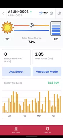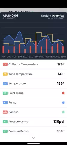 You can manage your SolFlux Smart Controller all through the Sensorlinx app, which lets you control and access your Solar Water Heating System performance and status, such as: